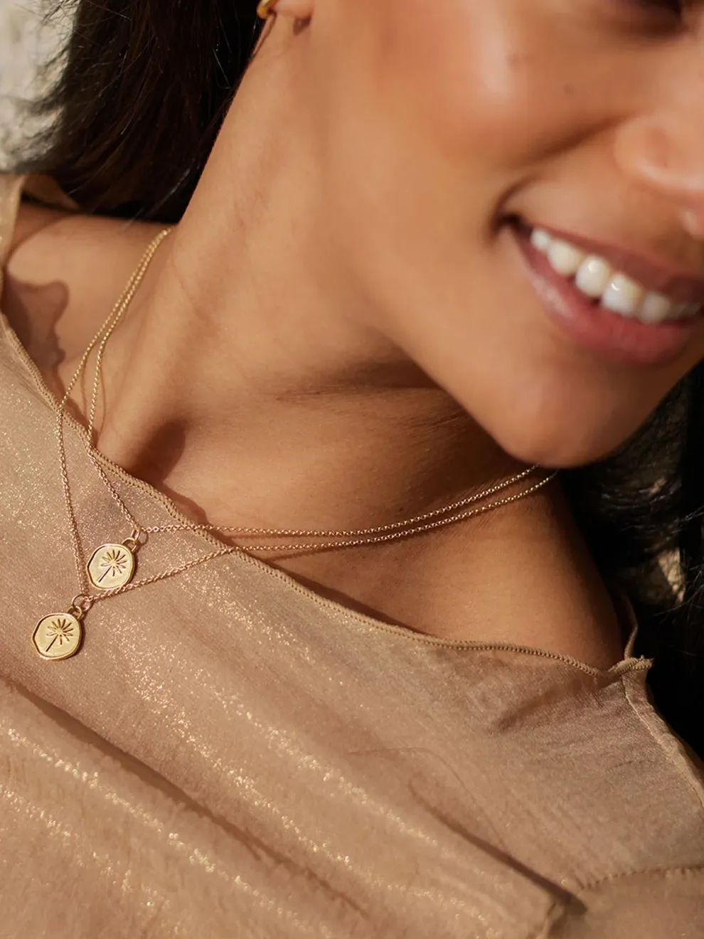 - 14k gold fill chain, 14mm 18k recycled gold vermeil on 925 sterling silver pendant