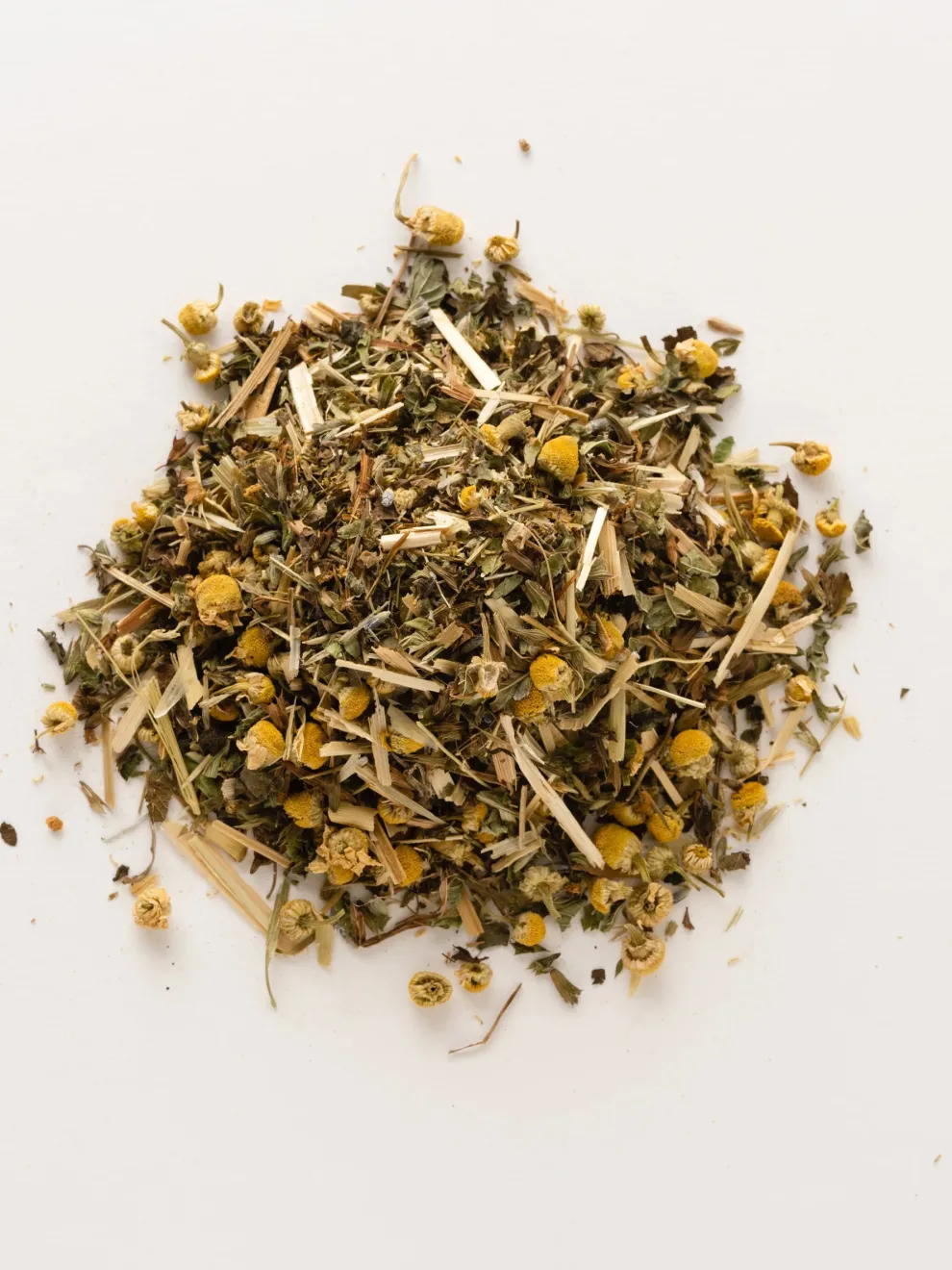 - Oatstraw, lemon balm, chamomile, lavender