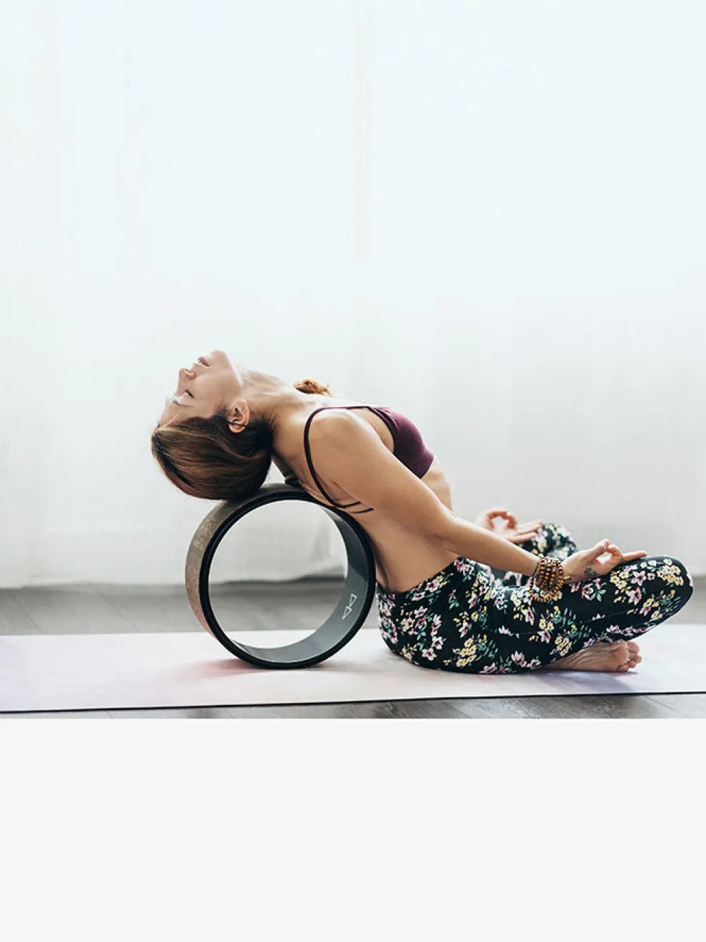 The yoga wheel by Yoga Design Lab is designed to help open the chest, shoulders, back and hip flexors. This Dharma exercise wheel helps yoga practitioners achieve backbends smoothly and loosen tight muscles.