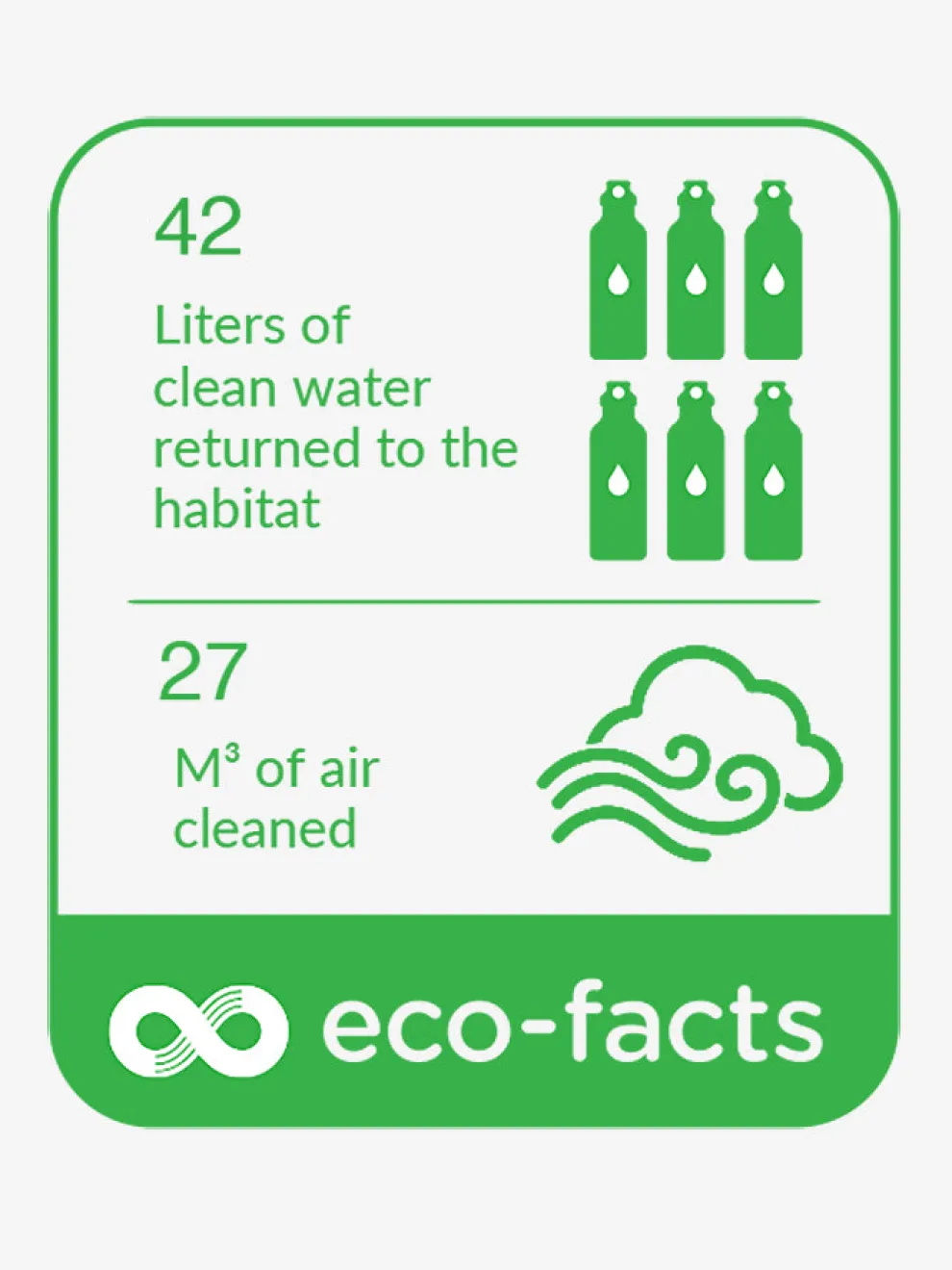 For every mat, 64 litres of cleaned water are returned to the local habitat as well as 40 cubic metres of clean air.