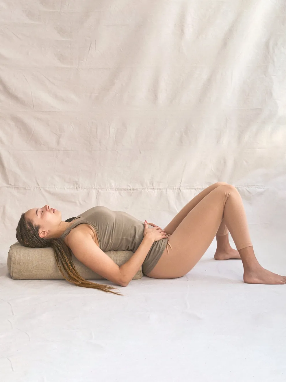 Rectangular bolsters offer greater width and a flatter surface for supine postures. They’rea bit more secure as they won’t move or roll while in use. The flat surface supports the back and can also be used to raise the hips in sitting postures andplaced length ways under the mid back to open up the chest. They’re perfect for pregnancy yoga and for anyone who’s looking to open their chest gently.