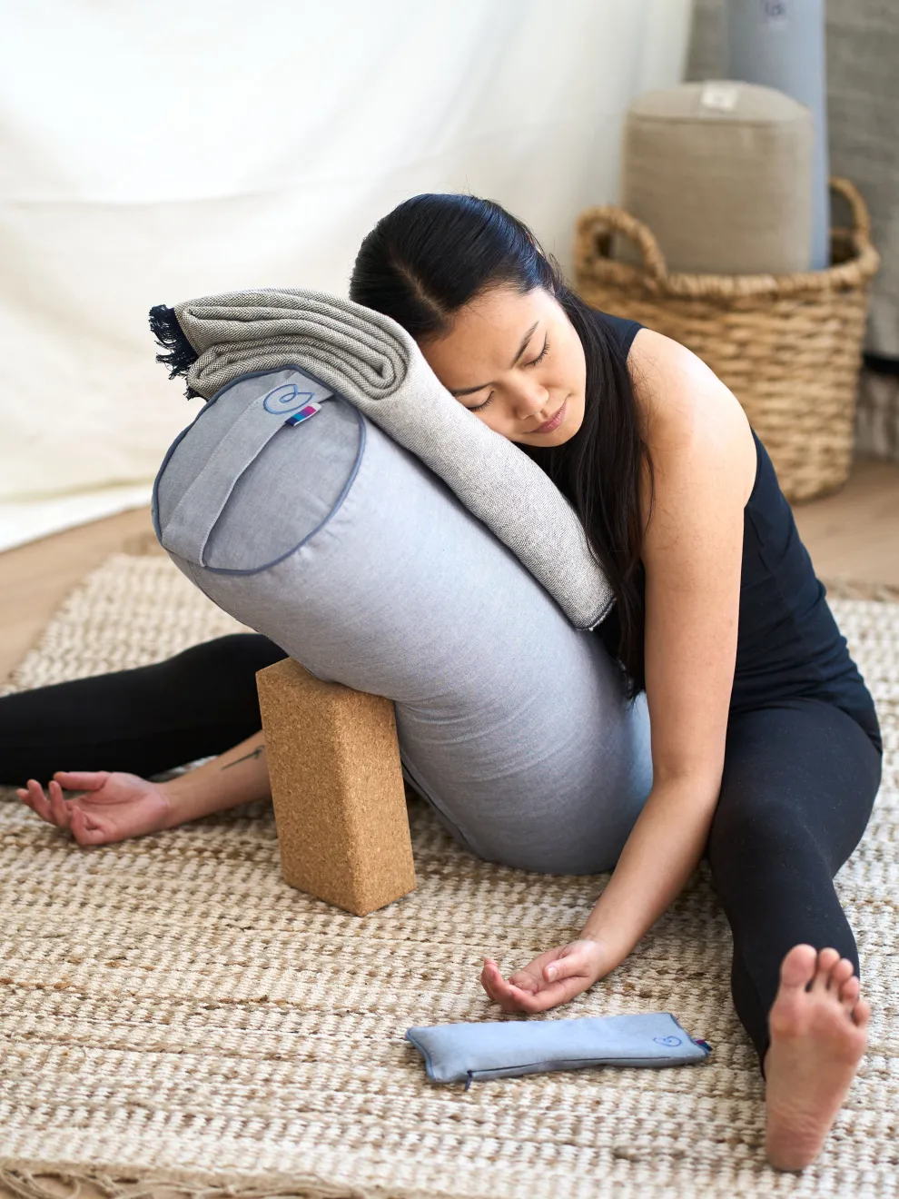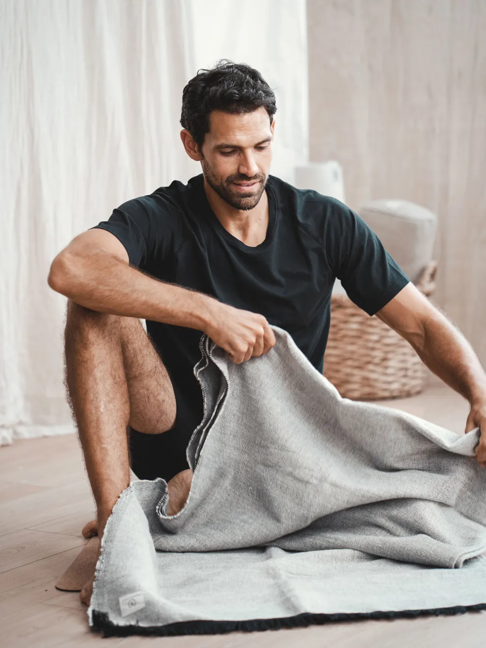 Find support and warmth with our chic organic cotton blanket. With its simple and sophisticated two-tone colour design, our organic blanket will double as an essential yoga prop as well as fit seamlessly with your home décor, ready for everyday use.