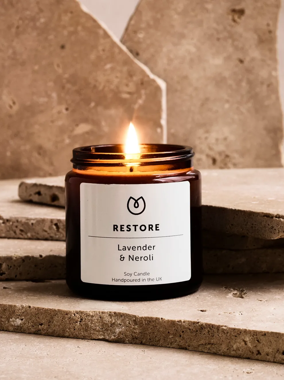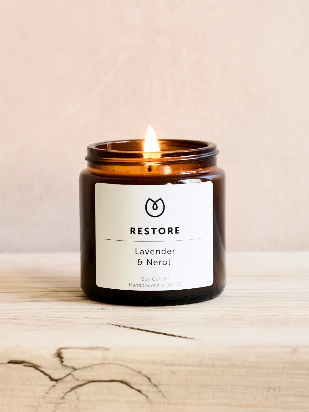 Create an atmosphere of rest and relaxation with our hand-poured vegan soy wax candle, scented with calming lavender and sweet and spicy neroli from the blossom of the bitter orange tree. These pure essential oils have been expertly blended to promote relaxation, alleviate anxiety and enhance positivity.