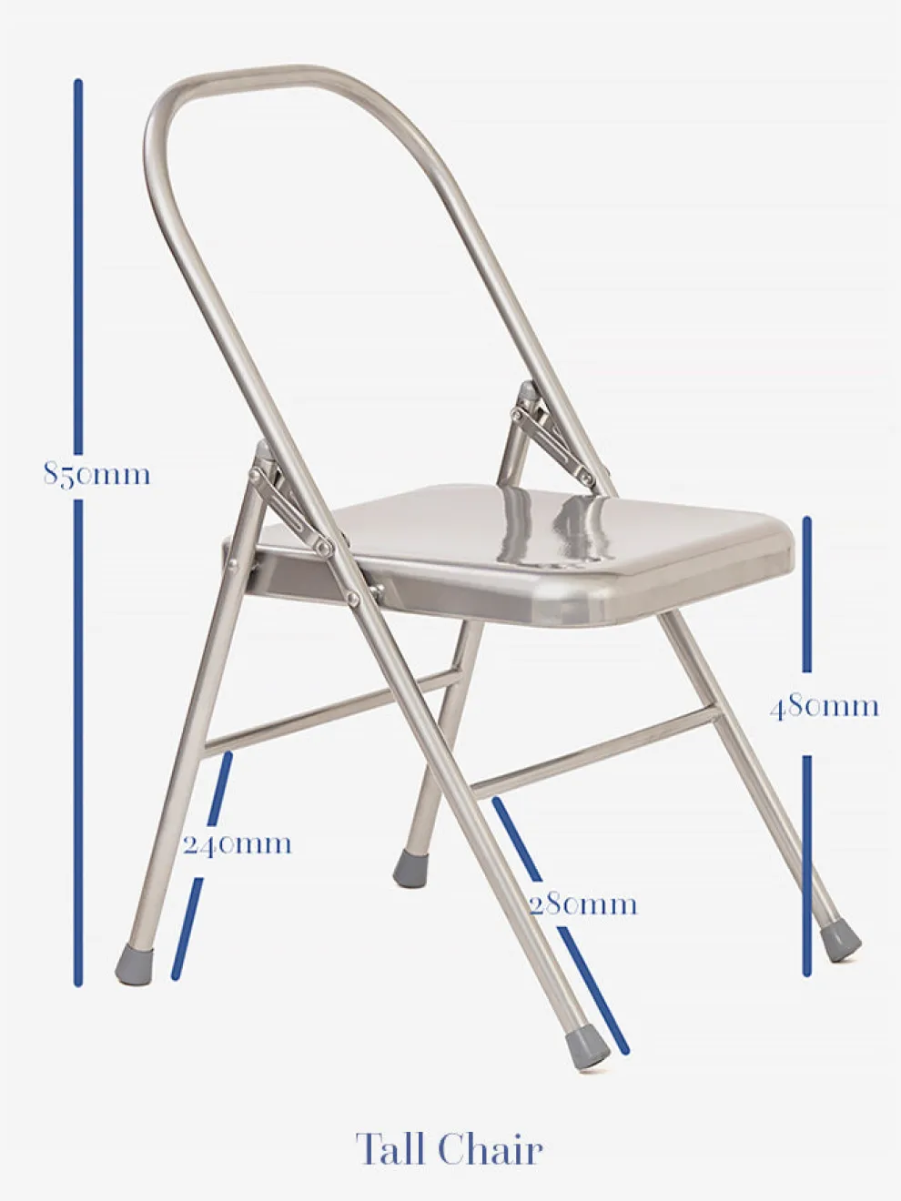The taller chair from Yogamatters is for the longer-legged and taller yoga practitioners. Used to aid rotation in seated twists, for support in backbends, in viparita karani and many other asanas, these chairs are ideal for serious students and yoga studios.